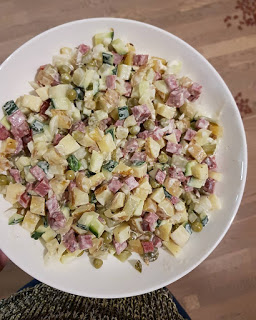 Nädalavahetusel tähistati Läti sünnipäeva. Läti on meile väga lähedal, ent läti köögi vastu ma eriti suurt huvi pole tundnud. Ja ega väga palju teadmisi pole praegugi, sest uitmõttena valmistada midagi läti köögist, läks mul retseptide otsimisega kiireks ja midagi põhjalikumalt lugeda ei jõudnud. Kui üldjoontes tundub naabrite toit meie omale väga sarnane, siis sügavamal otsimisel, leiaks kindlasti ka pärleid. Need pärlid jätan ma kindlasti mõneks teiseks korraks. Praegu leidsin aga internetiavarustest ühe kartulisalati retsepti, mis on sarnane eesti variandiga, kuid natuke teistsugune siiski.