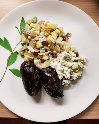 Kartulisalati kõrvale tegin sel sügis-talvel teist korda verivorste. Rannarootsi musta leivaga verivorstid oli mulle juba eelnevalt silma hakanud. Kui E-Selverist tellimust tegin, siis need mustad vorstid oli koheselt minu ostukorvis. Musta leiba ma verivorstis maitse järgi ei tuvastanud. Küll aga oli vorstid mõnusalt mahlased ega tundunud hamba all kuivad. Varasemalt olen proovinud ka kaerahelvestega verivorste (küll Maks&Mooritsa omad). Mis järgmiseks?!