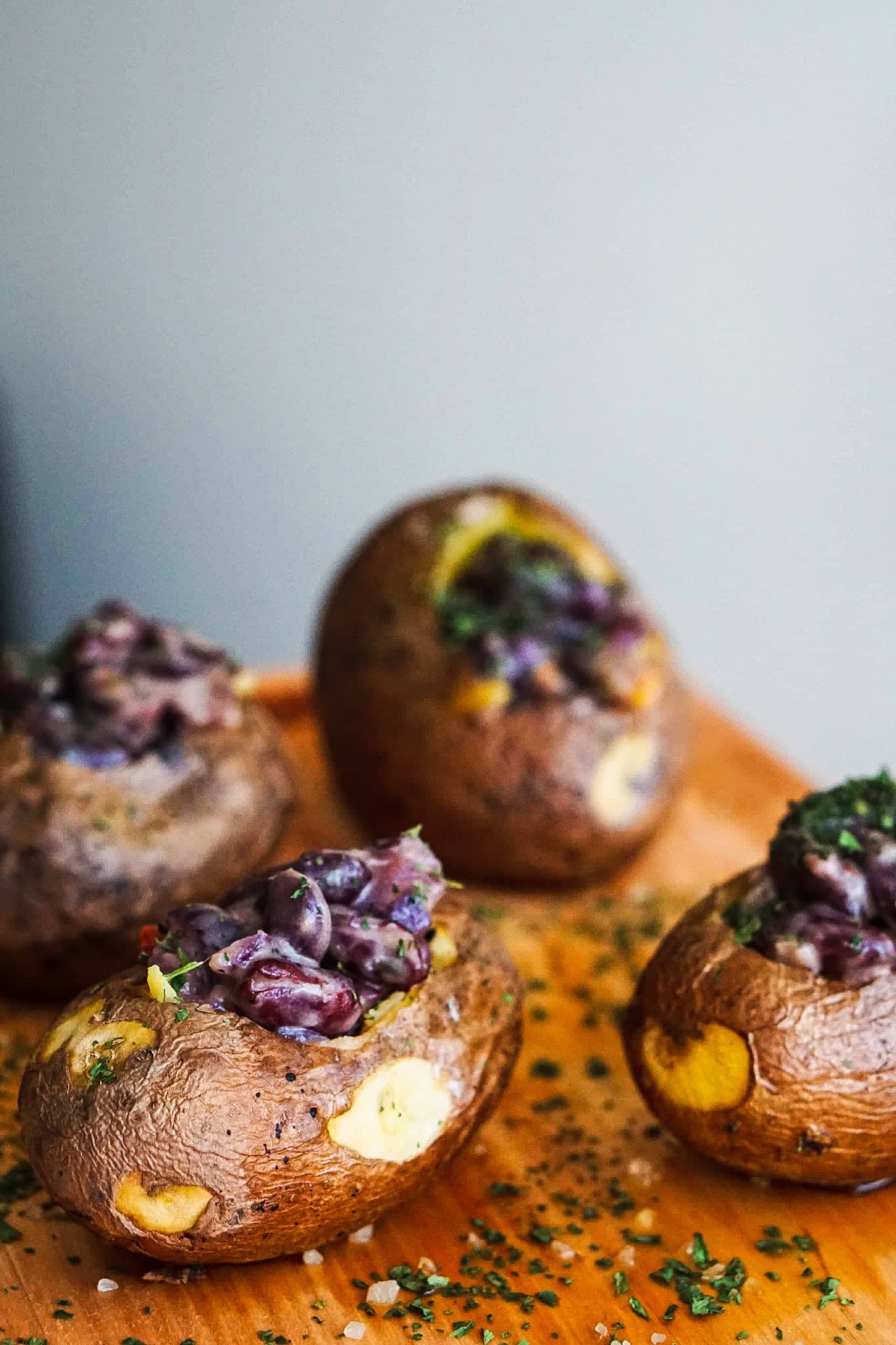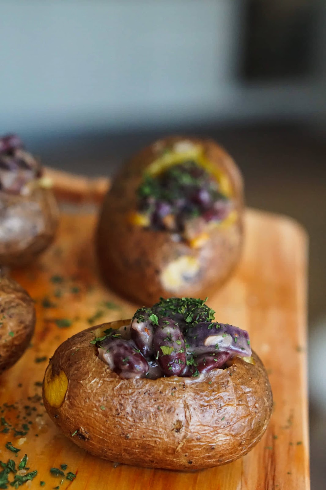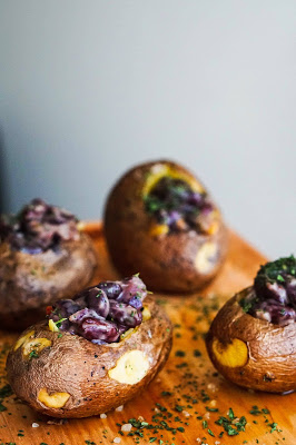 Ahjukartul on minu üks lemmikuid. Oma kartuli muutsin ma “huvitavamaks” valmistades ubadest täidise. Koos ubadega läks kartulisse punane sibul, veidi tšilli ja musta pipart, meresoola, küüslaugupulbrit ja Kühne musta küüslaugu kastmega. Minul on kodus üks eriti terav tšillipulber, mis on kunagi (kui ma õigesti mäletan) tellitud Umami e-poest (Nguan Soon tšillipulber). Piisab tõesti vaid veerand lusikast ja kogu toit on vürtsikas. Kühne musta küüslaugu kastme asemel võid kasutada ükskõik millist valget kastet.