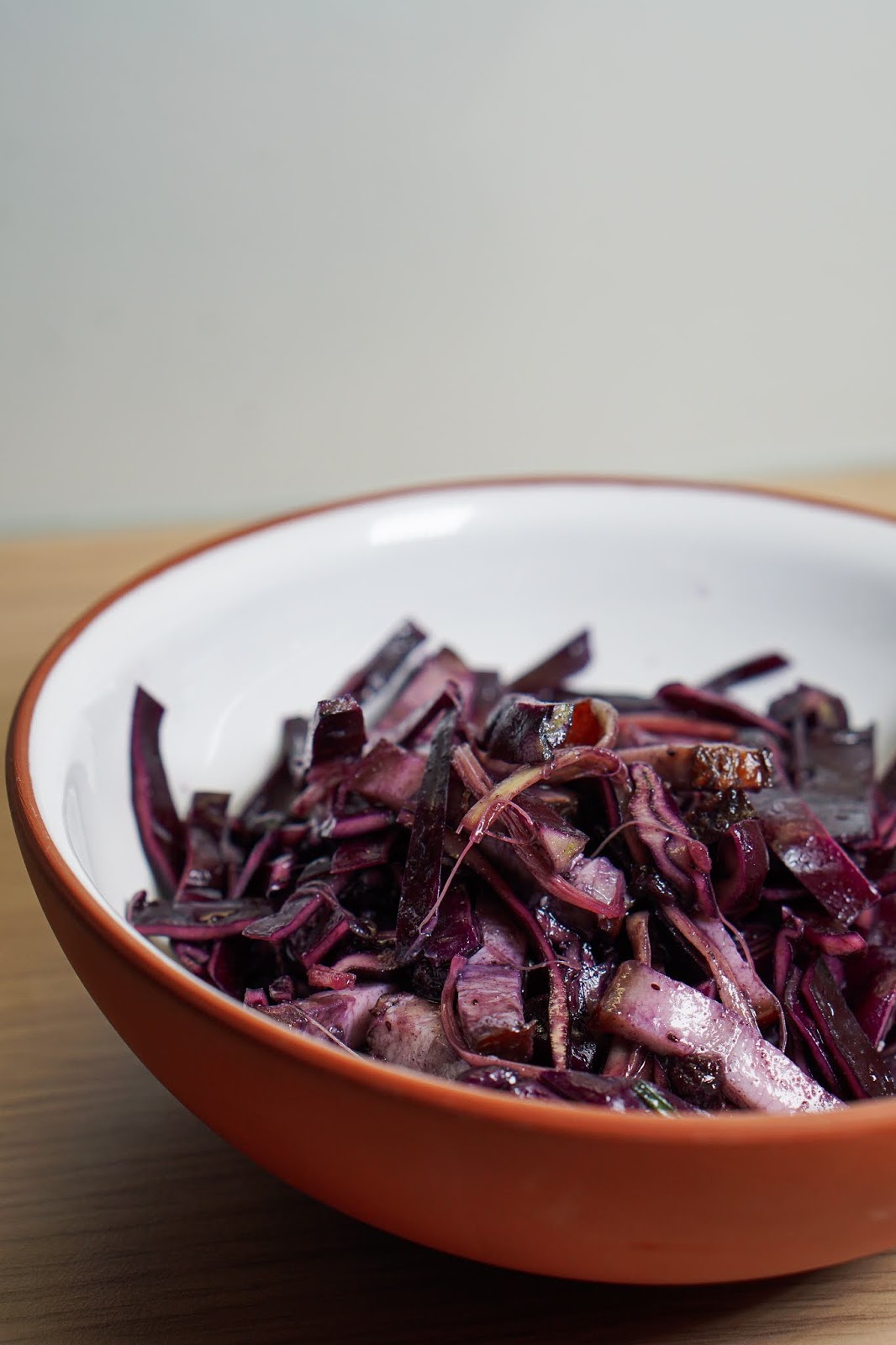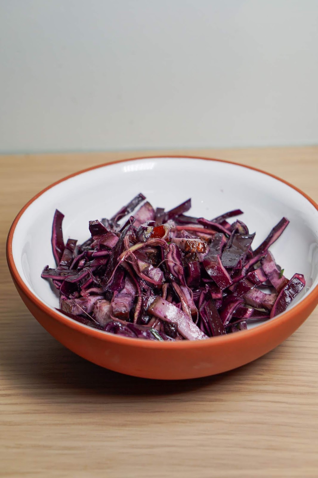 Haki kapsast peeneteks ribadeks. Sama tee ka suitsulihaga. Tõmba rabarberist peened ribad. Sega komponendid kokku ja maitsesta musta pipraga. Võta väiksem kauss, kus sega kokku mustikamoos ja mädarõigas. Lisa veidi vett, et kaste läheks vedelamaks. Vala salatile. Sega läbi ja lase külmkapis maitsestuda.