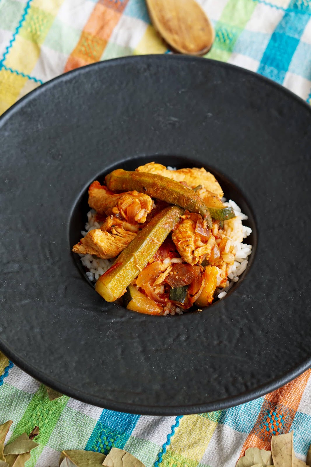 Lisa pannile õli, aja kuumaks ja prae kana igast küljest kuldpruuniks. Lisa veel küüslauku, tšilli ja paprikapulber. Sega läbi. Lisa tükeldatud sibul ja tomatid ja hauta 2-3 minutit, kuni sibulad muutuvad klaasjaks. Lisa kanapuljong ja suvikõrvits. Lase keema tõusta. Ja keeda kuni kaste hakkab paksenema (umbes 20 min). Lisa okra ja keeda veel umbes 5 minutit. Vajadusel lisa soola. Serveeri riisiga.