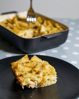 Tõsta makaronisegu tulelt ja sega hulka jahukastmesegu.