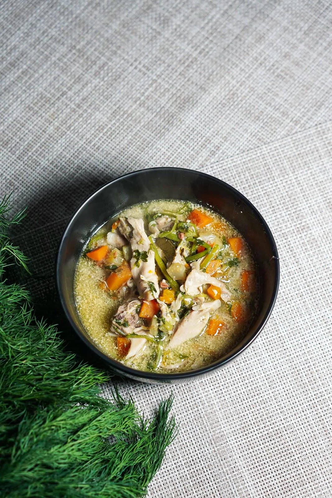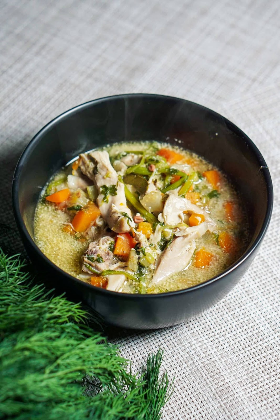 Võta välja kana. Eemalda kanalt nahk ja kondid, lõika väiksemateks tükkideks ning tõsta tagasi potti.