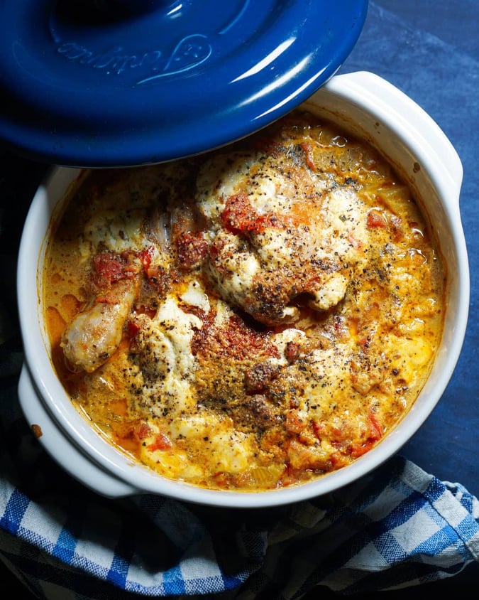 Valmistamine on imelihtne. Pane kõik komponendid ahjupotti (kaanega) kokku ja jätta umbes tunniks või ka veidi kauemaks 180 kraadisesse ahju. Kui soovid võid sibula pannil eelnevalt koos küüslaugu ja maitseainetega läbi praadida, tulevad maitsed paremini esile.