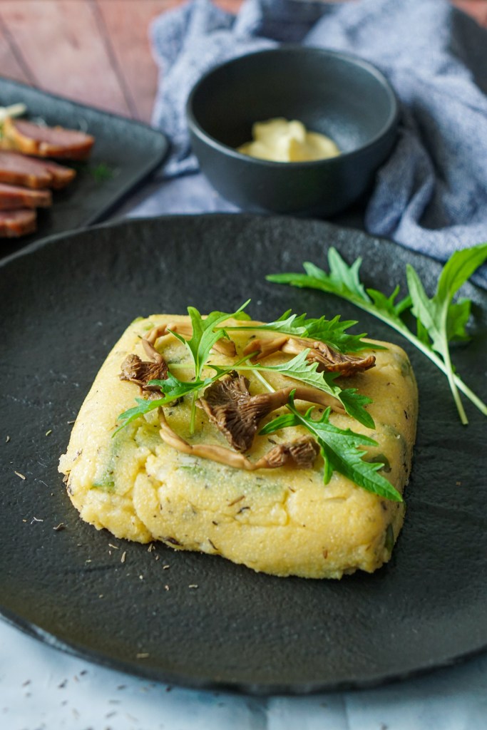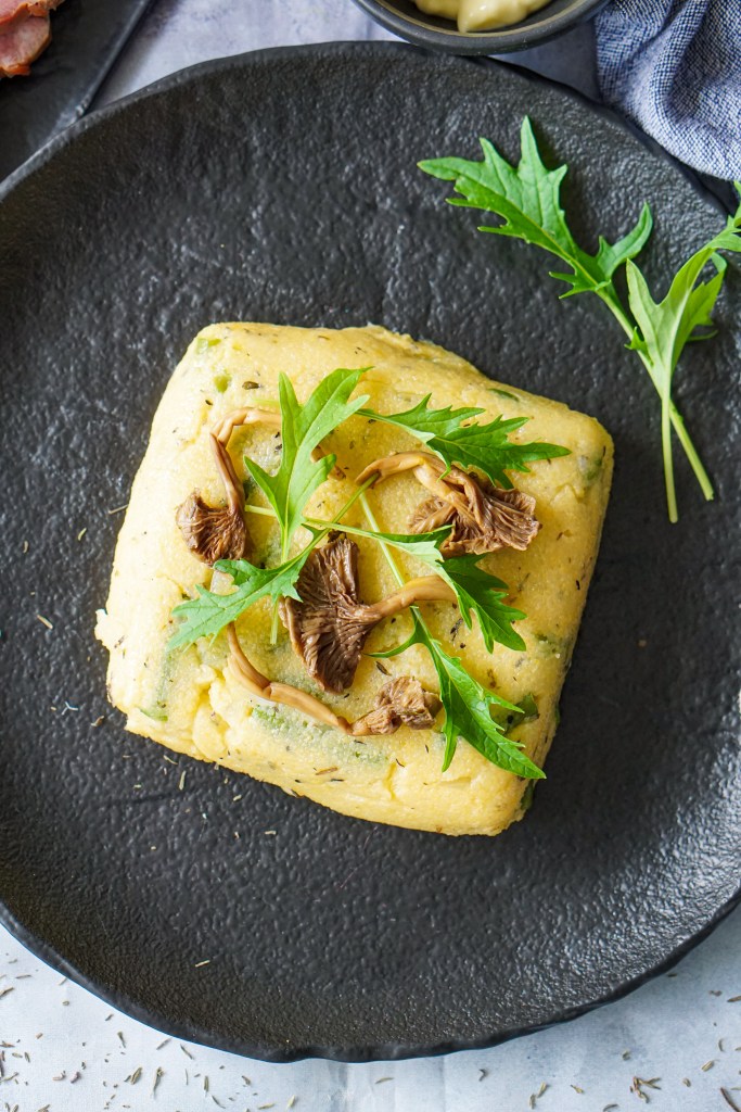 Vaja läheb: 1 tass maisijahu 1 tass vett + 2 tassi vett keetmiseks 0,5 tassi tükeldatud rohelisi ube veidi õli 0,25 tassi hakitud sibulat 1 tl hakitud küüslauku 1 tl tüümiani soola 0,5 tl võid