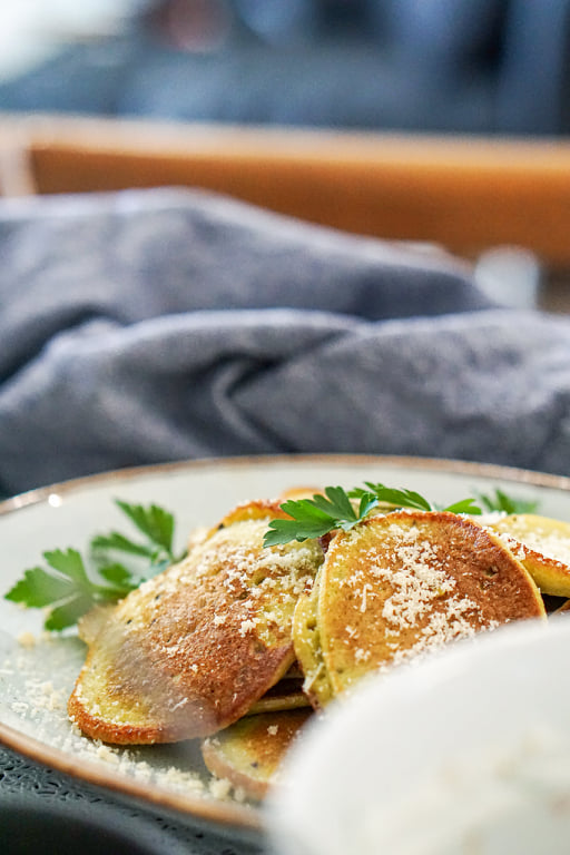 Kartulipannkoogid, milles ei ole midagi väga erilist ega uudset. Sarnane retsept on leitav ka Nami-Namis, erinevusega, et mina riivimise asemel kasutasin blenderit ja maitsestasin veidi teisiti. Mulle endale meeldib blenderi variant veidi rohkem, kuna pannkoogid jäävad õhulisemad 🙂