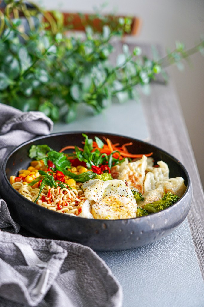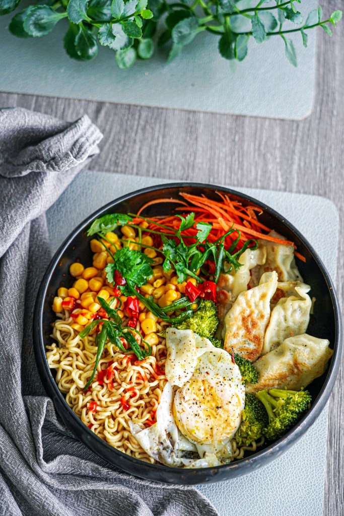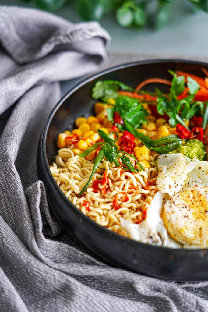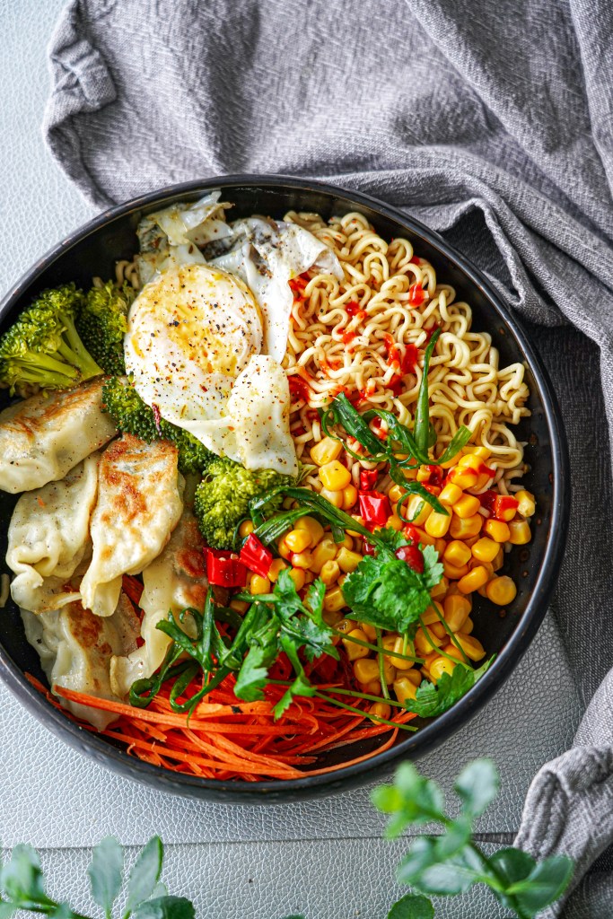 Vaja läheb: 1 pakk Indomie Mi Goreng kiirnuudleid 0,5 purki konservmaisi 1 tass brokoliõisikuid 5-6 keedetud pelmeeni 1 muna 1 spl riivitud porgandit Sriracha kastet rohelist sibulat viilutatud tšillikaun värsket koriandrit õli praadimiseks